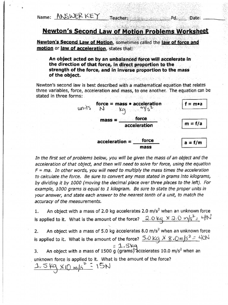 Newton S Second Law Of Motion Problems Worksheet Fill Online