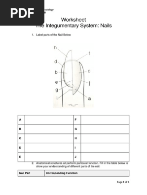 Worksheet Nails Nail Anatomy Integumentary System