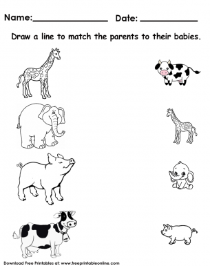 Animal Mothers And Babies Printable Pre K 1st Grade